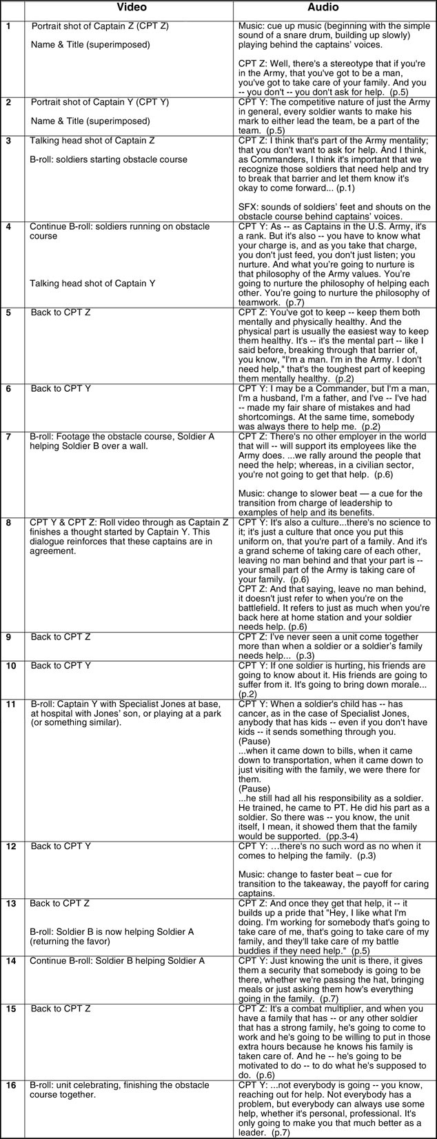 The following paper edit is taken from a transcribed interview of two Army captains, Captain Y and Captain Z. (Note: page numbers indicate location in the transcript, since it wasn’t time stamped.) The goal is to generate approximately three minutes of video from a seven-page transcript, resulting in a training module that addresses these content points: